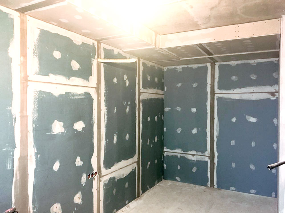 Клиент хотел выполнить защиту собственной квартиры от ударного и воздушного шума с минимальной потерей жилплощади, поэтому каркасные решения с различного вида ватой он отклонил сразу же, потому что они ОЧЕНЬ СИЛЬНО "съедают" площадь жилого помещения.